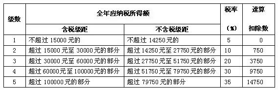 解析:本表为个体工商户的生产、经营所得和企事业单位的承包经营、承租经营所得适用。所称全年应纳税所得额,是指每一纳税年度的收入总额减除成本、费用以及损失后的余额。