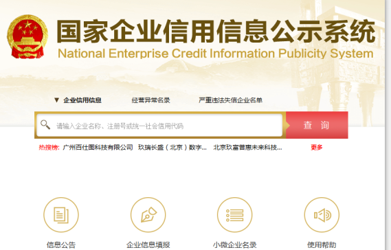 步骤1:用户在网上进入国家企业信用信息公示系统,点击“企业信息填报”,进入企业信息填报系统,并选择企业所在地址。