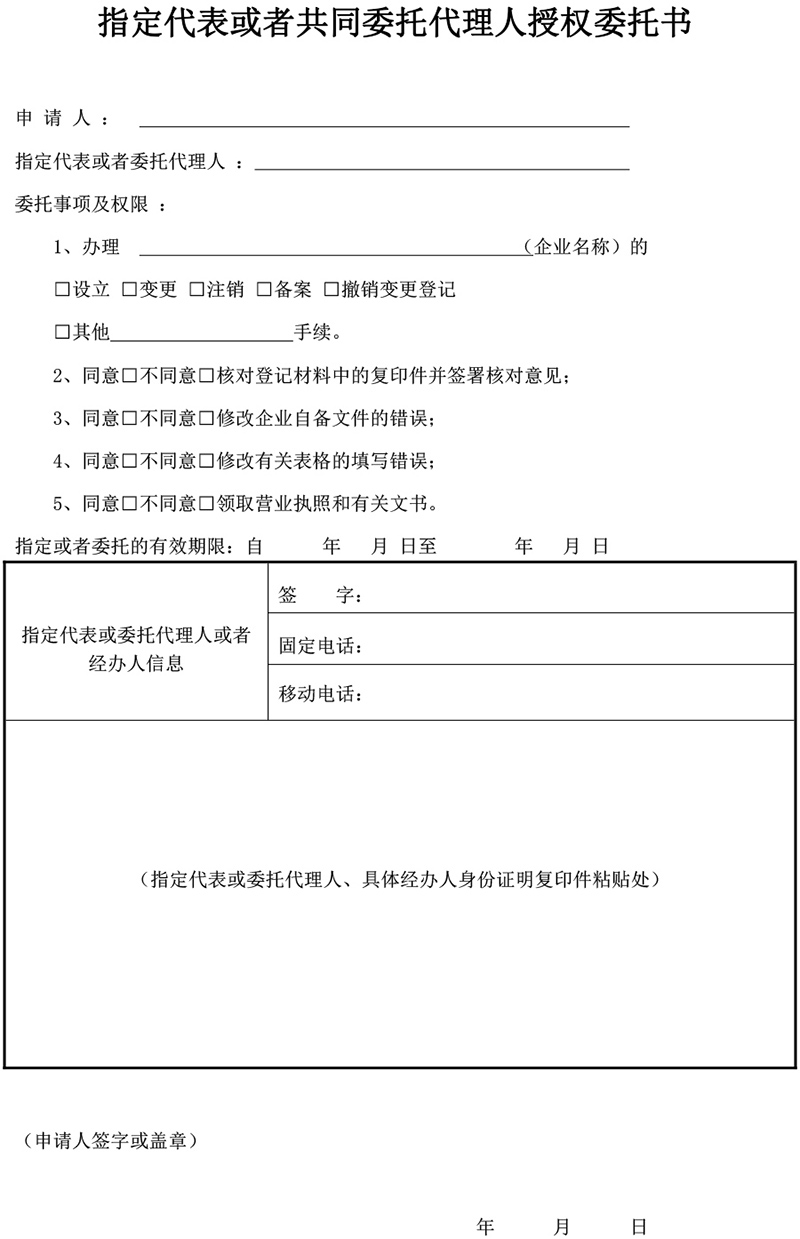 以上是资讯指定代表或者共同委托代理人授权委托书(空白版)的内容,更多相关内容,请访问https://www.qishunbao.com/。作为一站式企业服务平台,企顺宝(400-6225-520)提供公司注册、财税记账、商标知产、人事社保、专业法律等早期创业公司需要的服务。搜索“企顺宝”,前往企顺宝官网,即可办理相关业务。