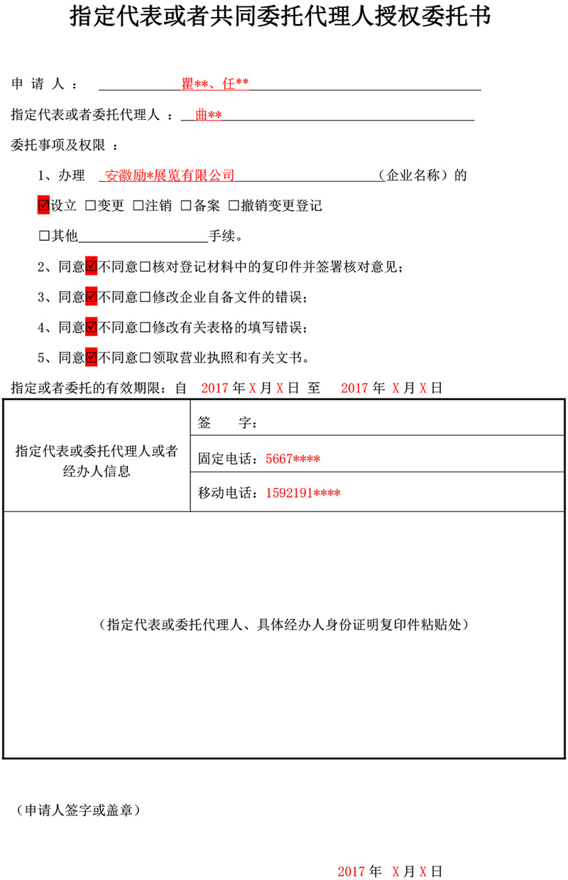 以上是资讯指定代表或者共同委托代理人授权委托书(填写示范版)的内容,更多相关内容,请访问https://www.qishunbao.com/。作为一站式企业服务平台,企顺宝(400-6225-520)提供公司注册、财税记账、商标知产、人事社保、专业法律等早期创业公司需要的服务。搜索“企顺宝”,前往企顺宝官网,即可办理相关业务。